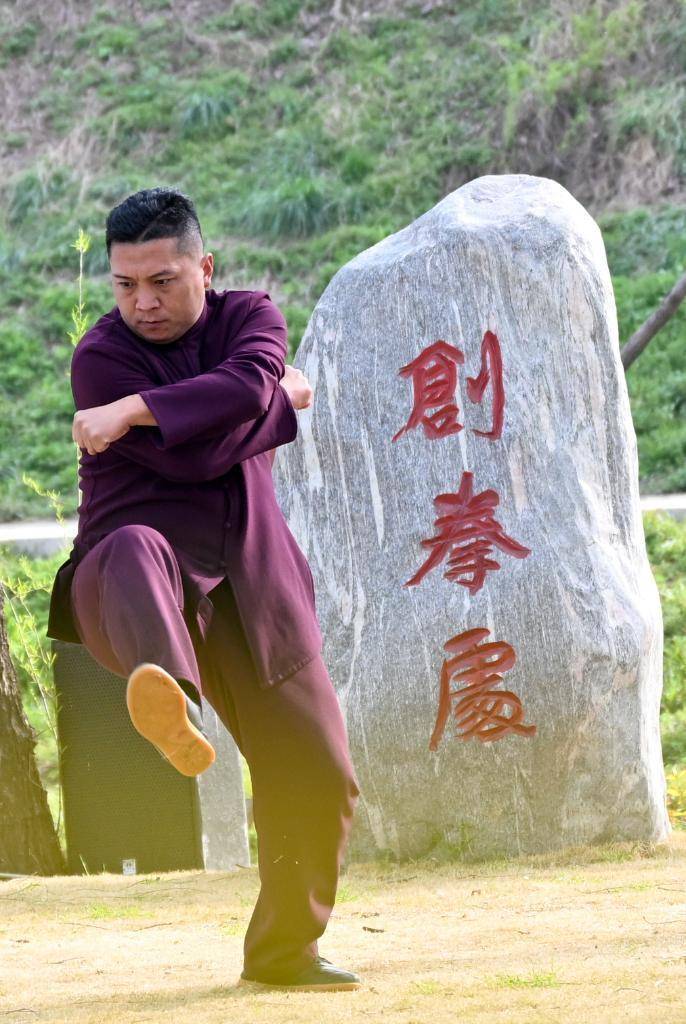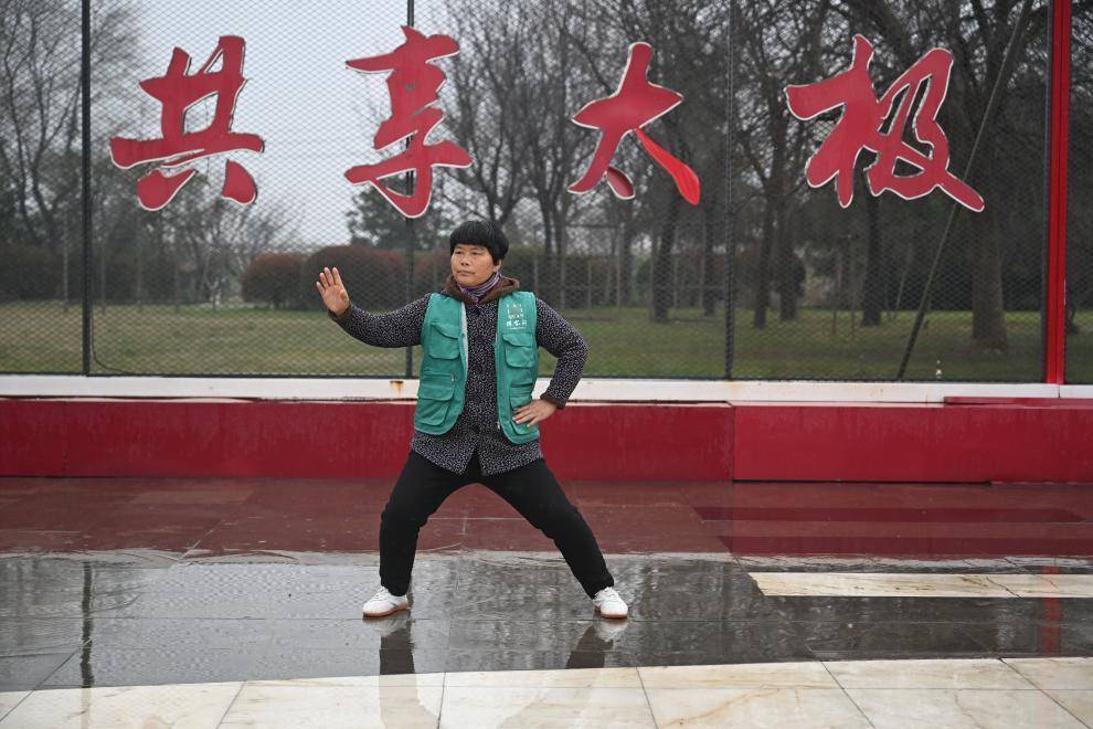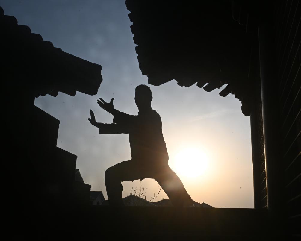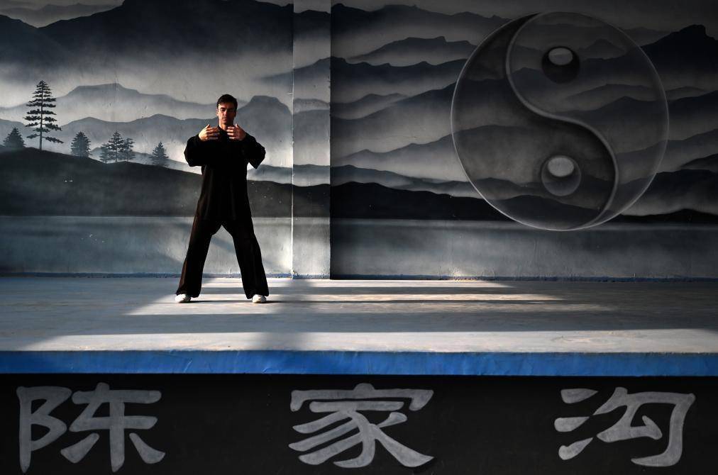 2026年3月19日,在河南省温县陈家沟东沟,拳师在练习太极拳。