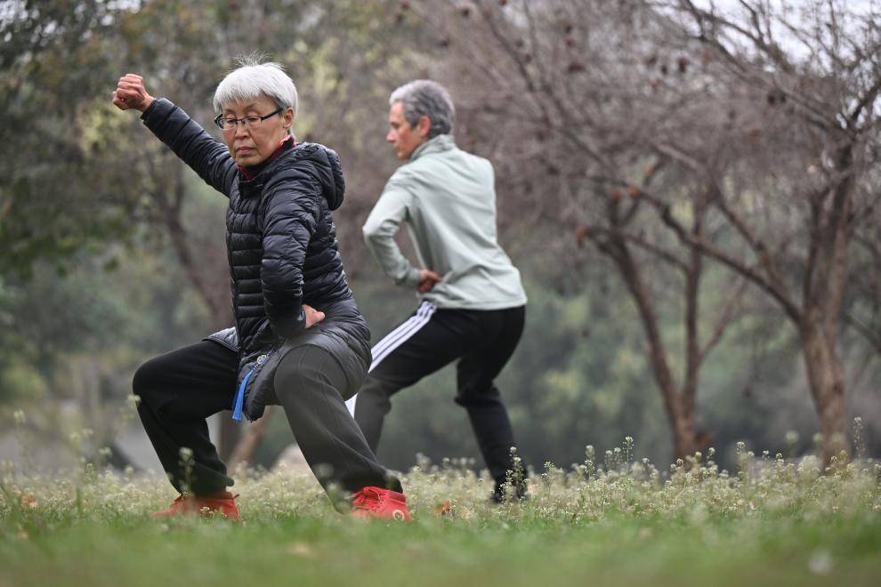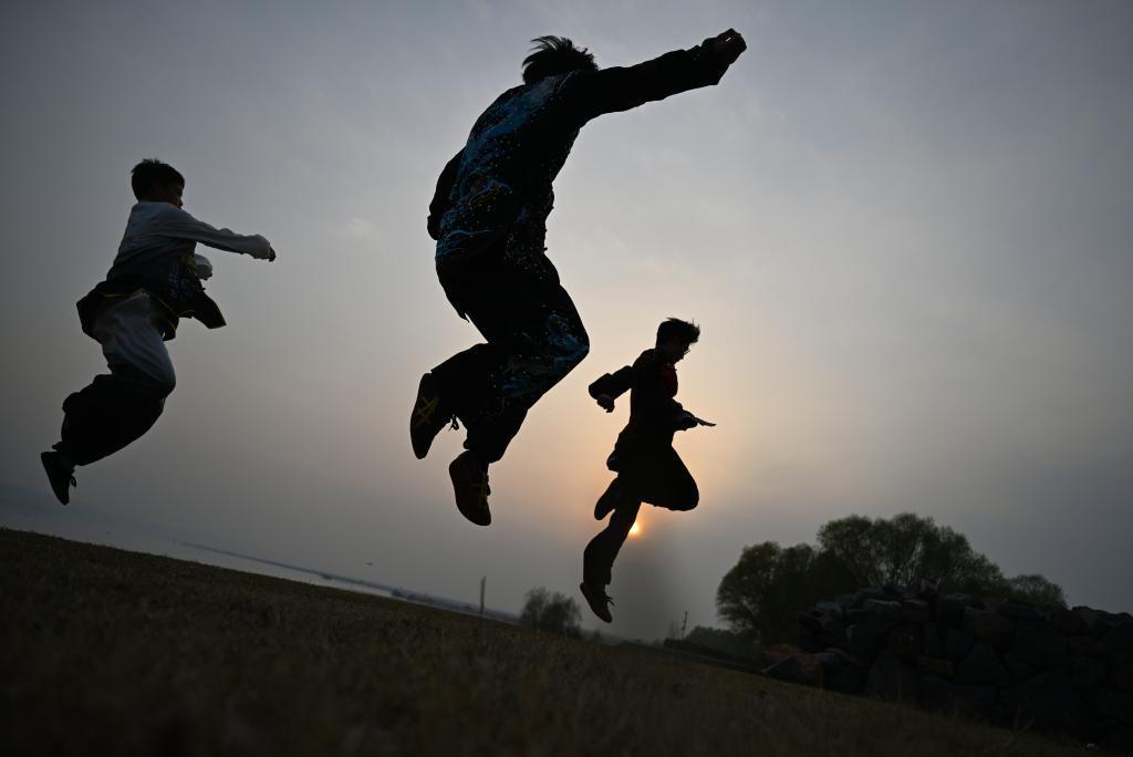 2026年3月19日,在河南省温县陈家沟村附近,几名太极拳爱好者在练习太极拳。