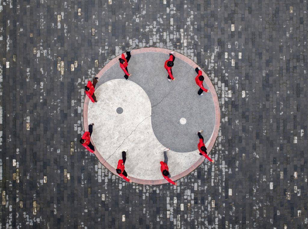 这是2020年12月17日在河南省焦作市温县陈家沟拍摄的太极拳申遗成功庆祝仪式现场(无人机照片)。