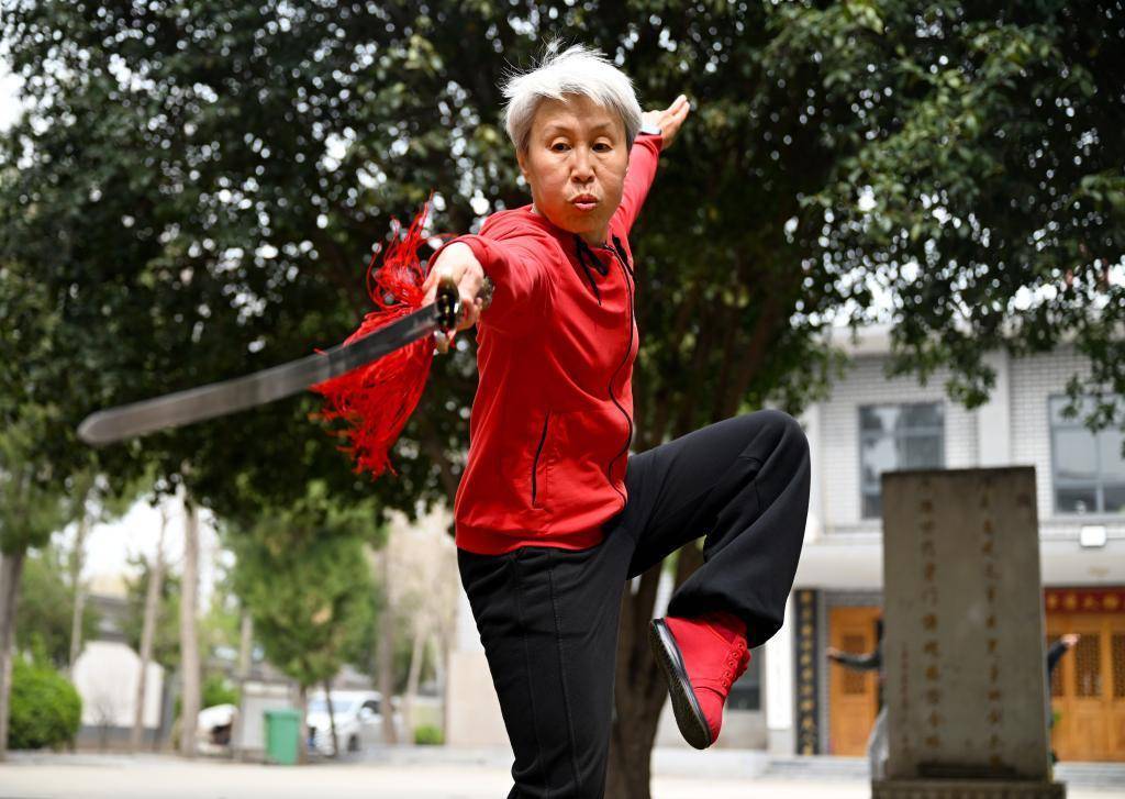 2026年3月19日,俄罗斯太极拳学员陈一梅在陈家沟太极拳学校练习太极剑。