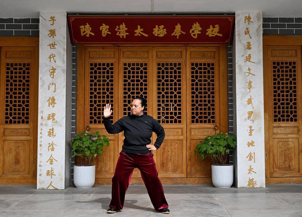 2026年3月19日,俄罗斯太极拳学员伊莉娜在陈家沟练习太极拳。