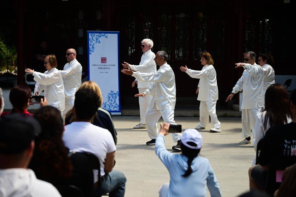 在马耳他桑塔露琪亚,马耳他太极爱好者在静园表演太极(2025年4月27日摄)。
