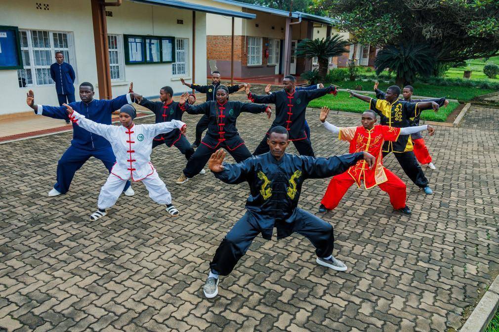 2026年3月18日,当地太极拳爱好者在卢旺达大学孔子学院习练太极拳。
