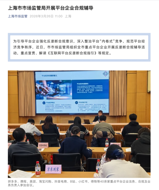 而最新的消息是,根据2026年3月26日,上海市市场监管局的反垄断合规宣贯内容,核心议题直指平台经济领域“算法共谋”、“二选一”等新型垄断风险,结合典型案例,对垄断协议认定、滥用市场支配地位风险识别、经营者集中申报等核心条款进行深度解读。监管部门明确提示,企业需警惕利用数据、算法、技术、资本优势及平台规则实施垄断行为,并要求建立健全内部合规审查机制。